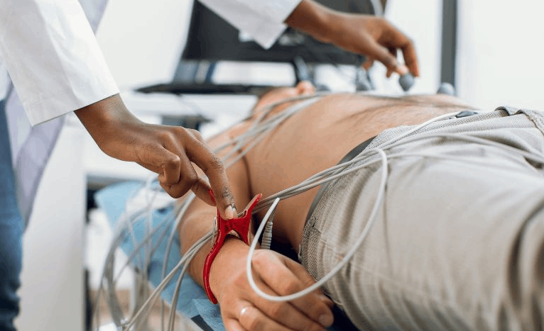O ECG analisa o funcionamento do coração, identificando possíveis alterações cardíacas.